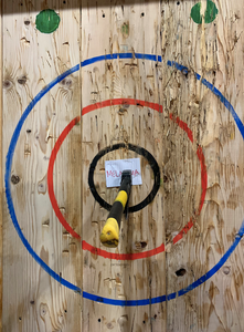 Tuesday, my work had a company workshop at an Axe Throwing place and we all threw some axes at melanoma. Somehow I didn’t hit the target once, but the rest of my coworkers helped me out and shredded that thing. It was all fun and games until I started barfing and was sick the rest of the afternoon. I didn’t make it to our company dinner cause I was too sick. So, let’s go ahead and add “Lumberjaxes” to the barf bingo - what a unique one! (Side note: I think I could write a book about the art of barfing in public. I’ve really got it down.)